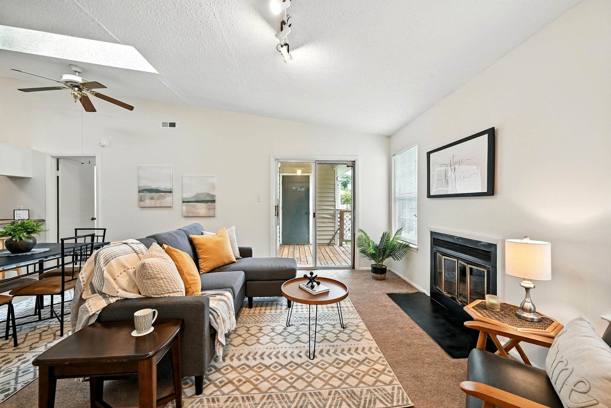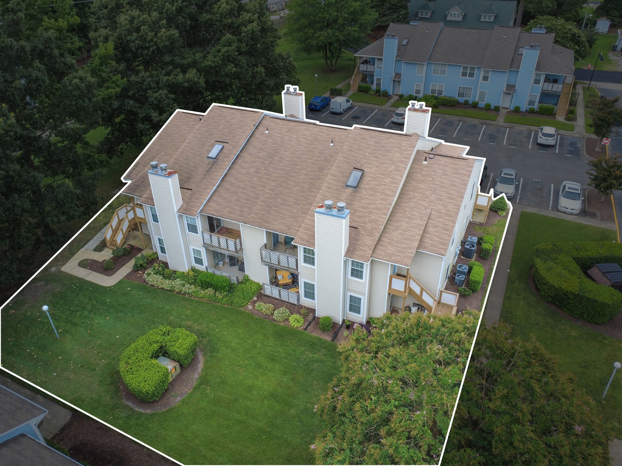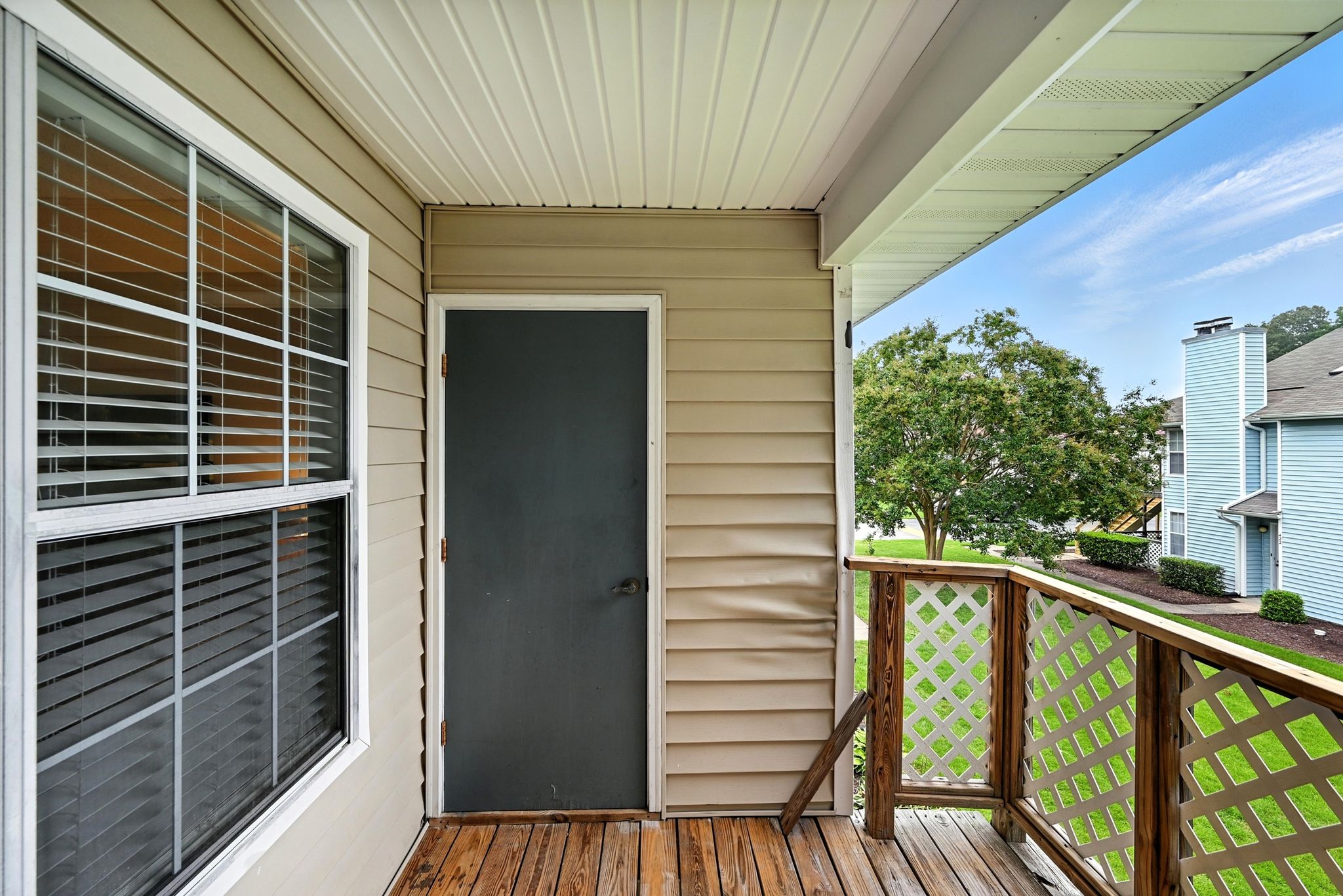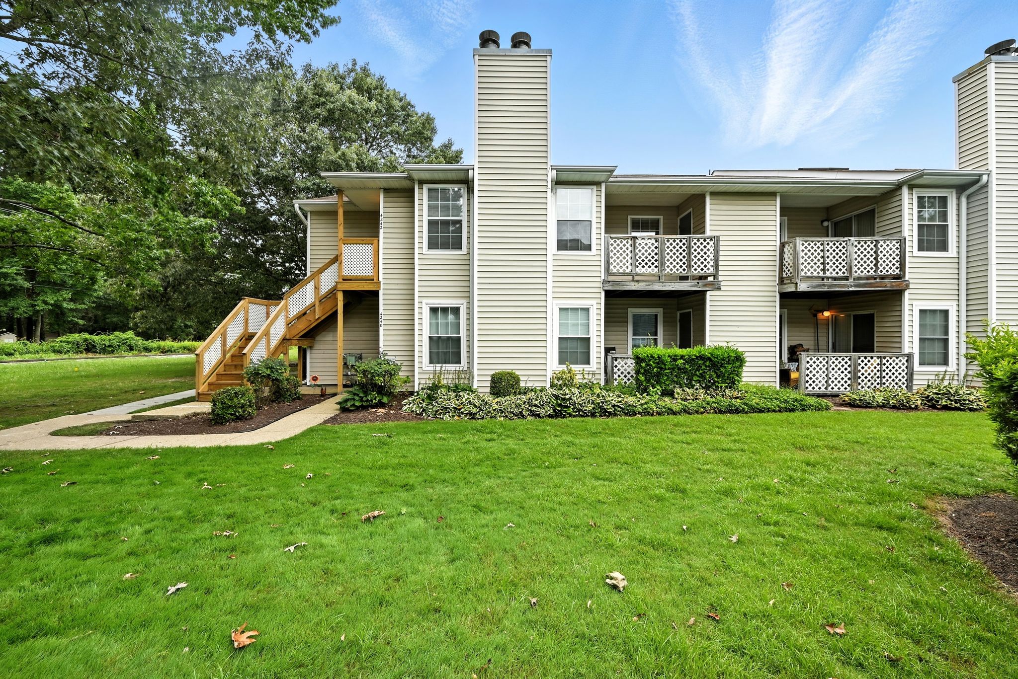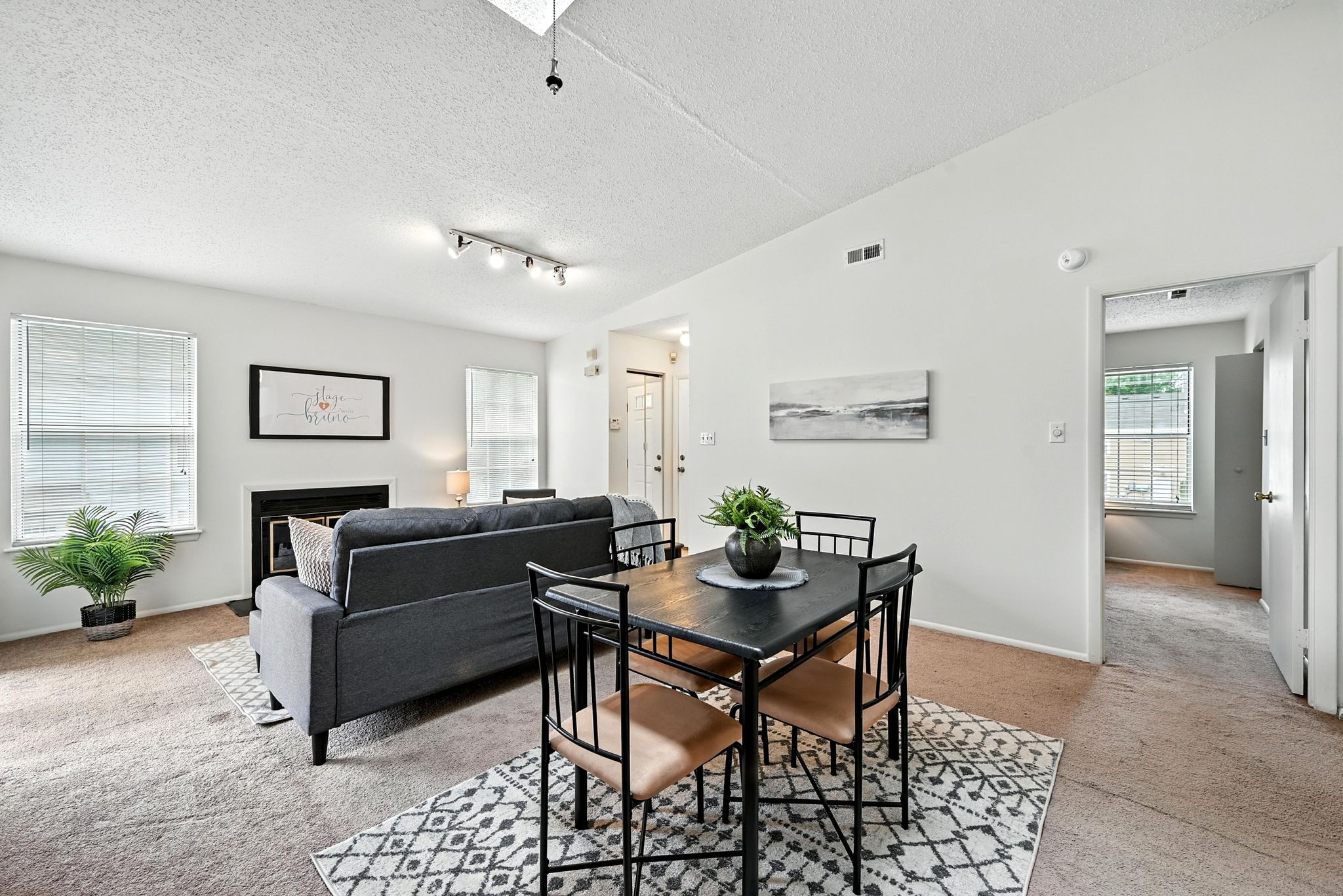 Welcome to this move-in ready end-unit condo in a secure gated community in the heart of Virginia Beach! This upstairs unit offers two spacious primary suites, each with its own full bath and walk-in closet, separated by a bright central living area with vaulted ceilings a skylight and a cozy wood-burning fireplace—perfect for relaxing evenings or chilly mornings. Step onto the private balcony overlooking a peaceful green space perfect for your morning coffee or evening unwind. Located within walking distance to shopping, dining, and local cafes, and just minutes from Town Center and the Oceanfront. Enjoy easy access to interstates and military bases. Community amenities include a clubhouse, pool, water, sewer, trash, and grounds maintenance. Live comfortably with privacy, convenience, and lifestyle all in one place!
