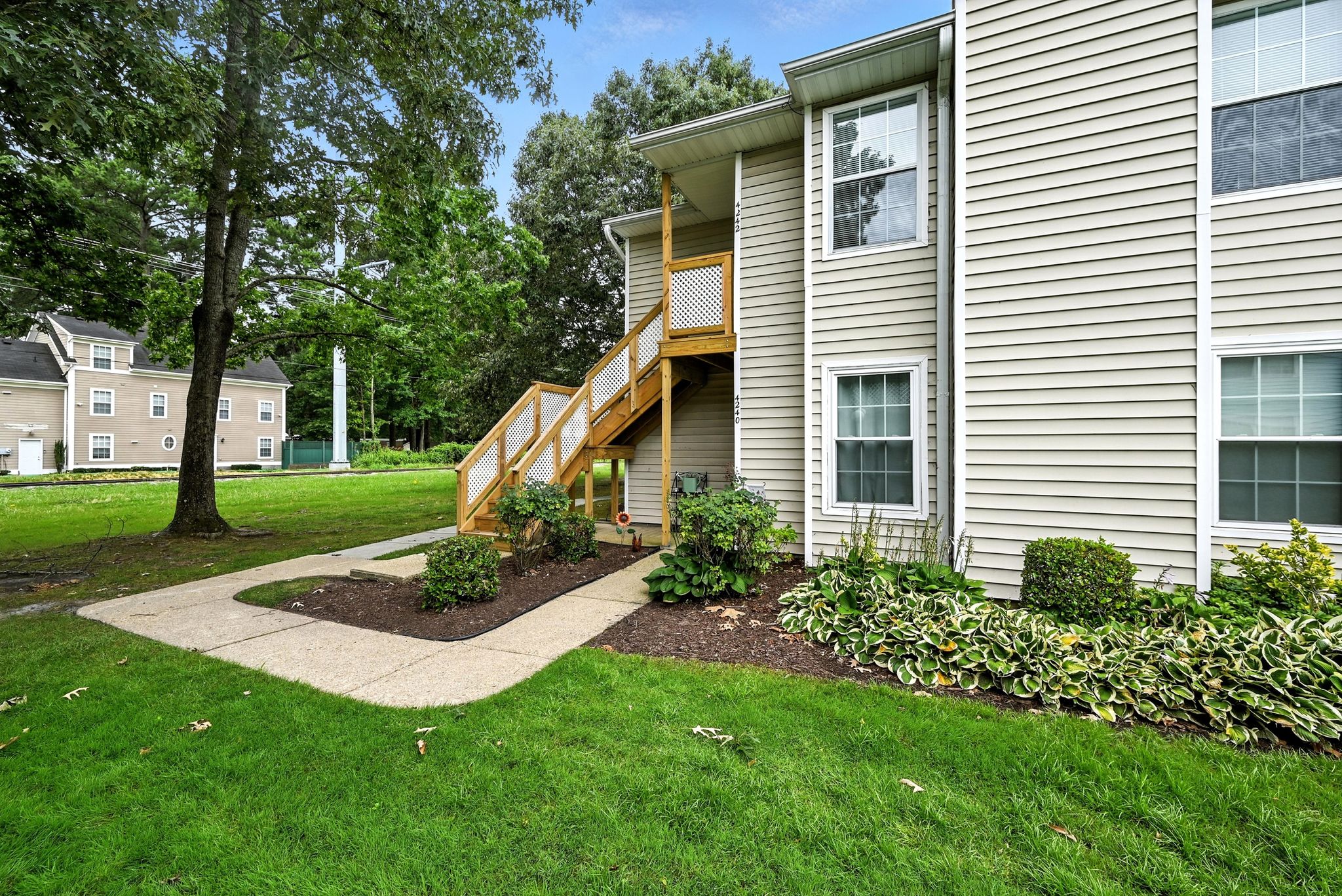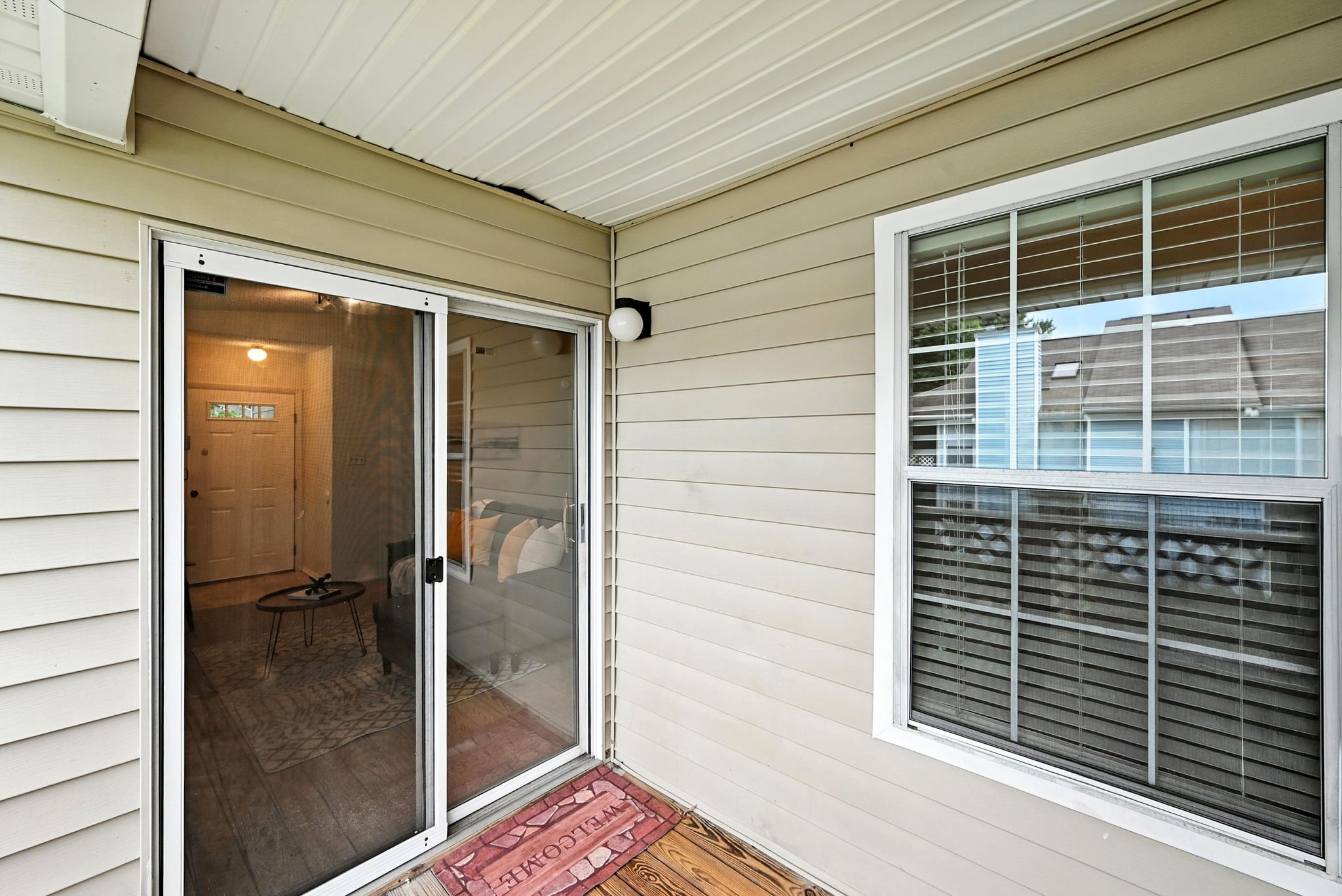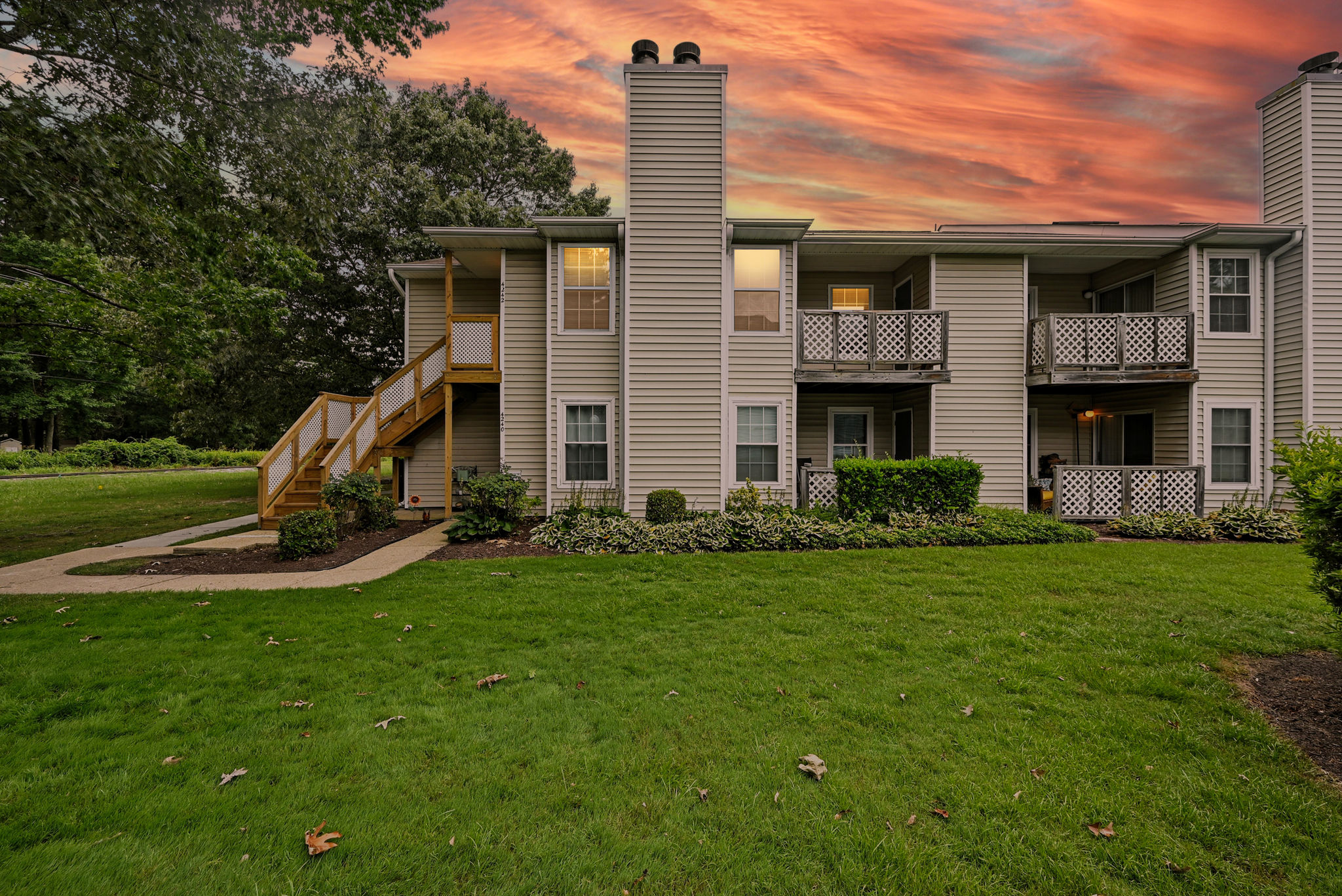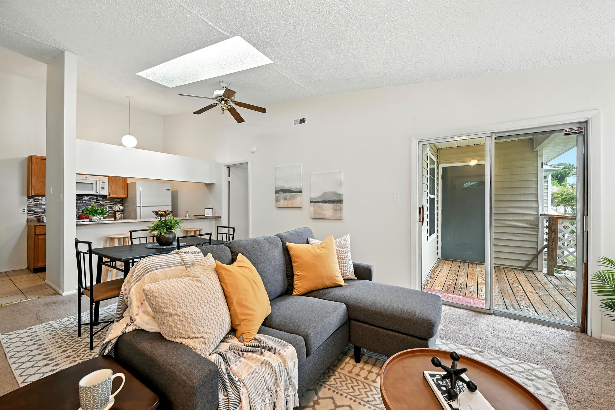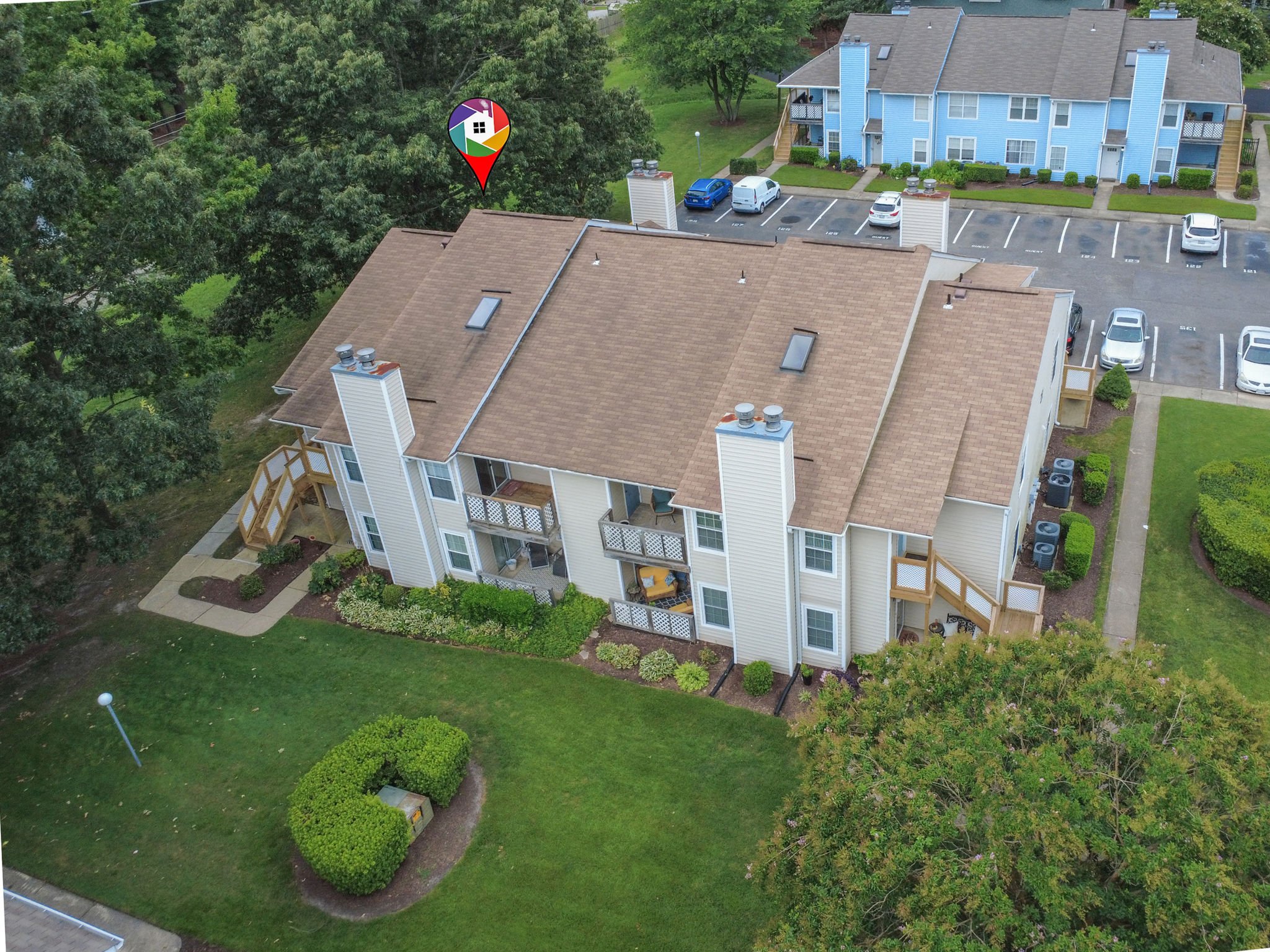 Welcome to this move-in ready end-unit condo in a secure gated community in the heart of Virginia Beach! This upstairs unit offers two spacious primary suites, each with its own full bath and walk-in closet, separated by a bright central living area with vaulted ceilings a skylight and a cozy wood-burning fireplace—perfect for relaxing evenings or chilly mornings. Step onto the private balcony overlooking a peaceful green space perfect for your morning coffee or evening unwind. Located within walking distance to shopping, dining, and local cafes, and just minutes from Town Center and the Oceanfront. Enjoy easy access to interstates and military bases. Community amenities include a clubhouse, pool, water, sewer, trash, and grounds maintenance. Live comfortably with privacy, convenience, and lifestyle all in one place!