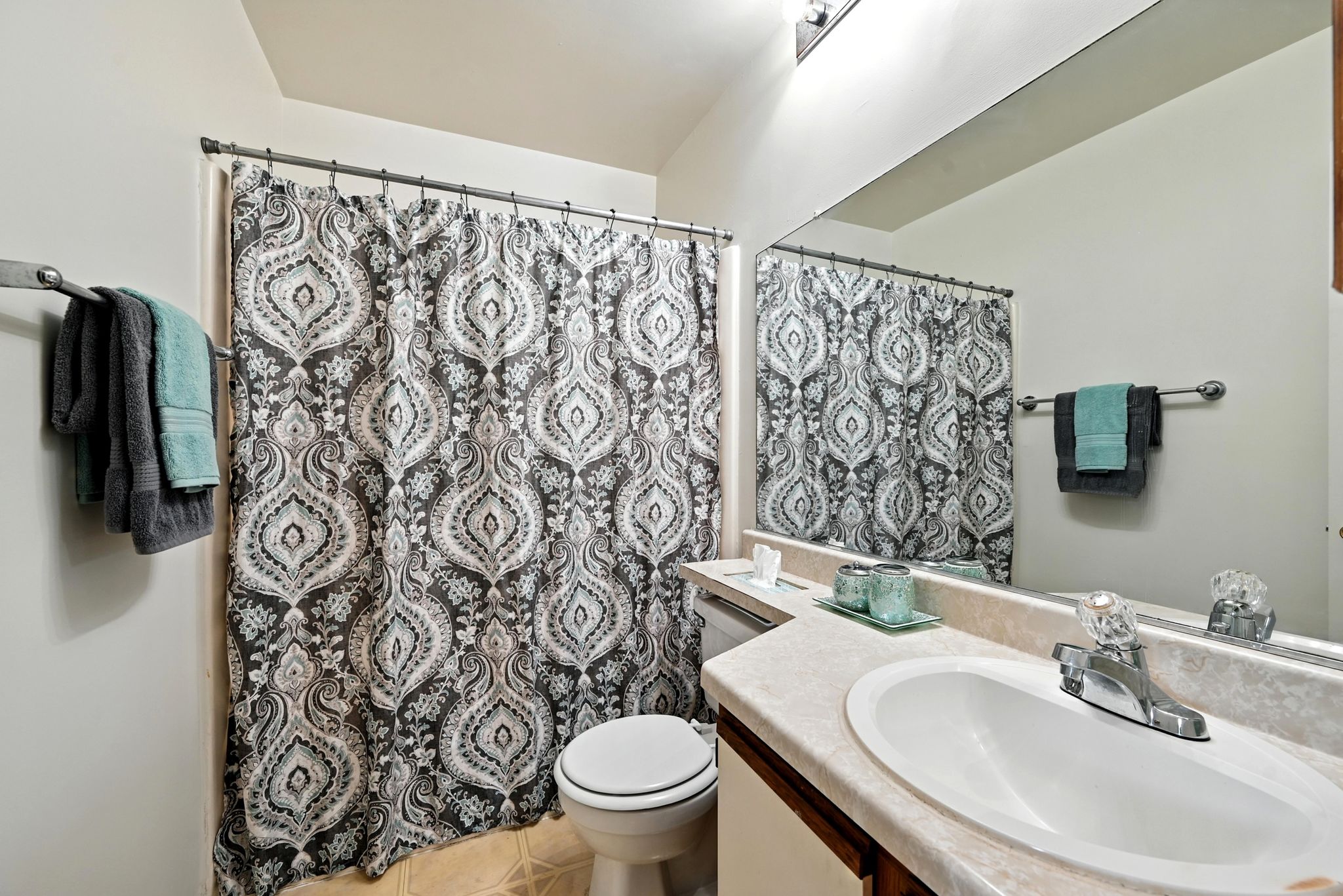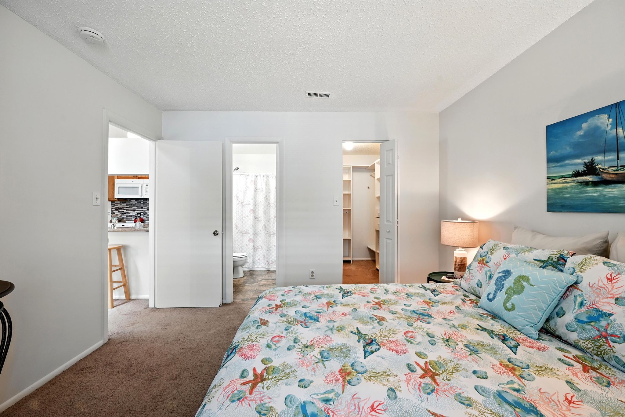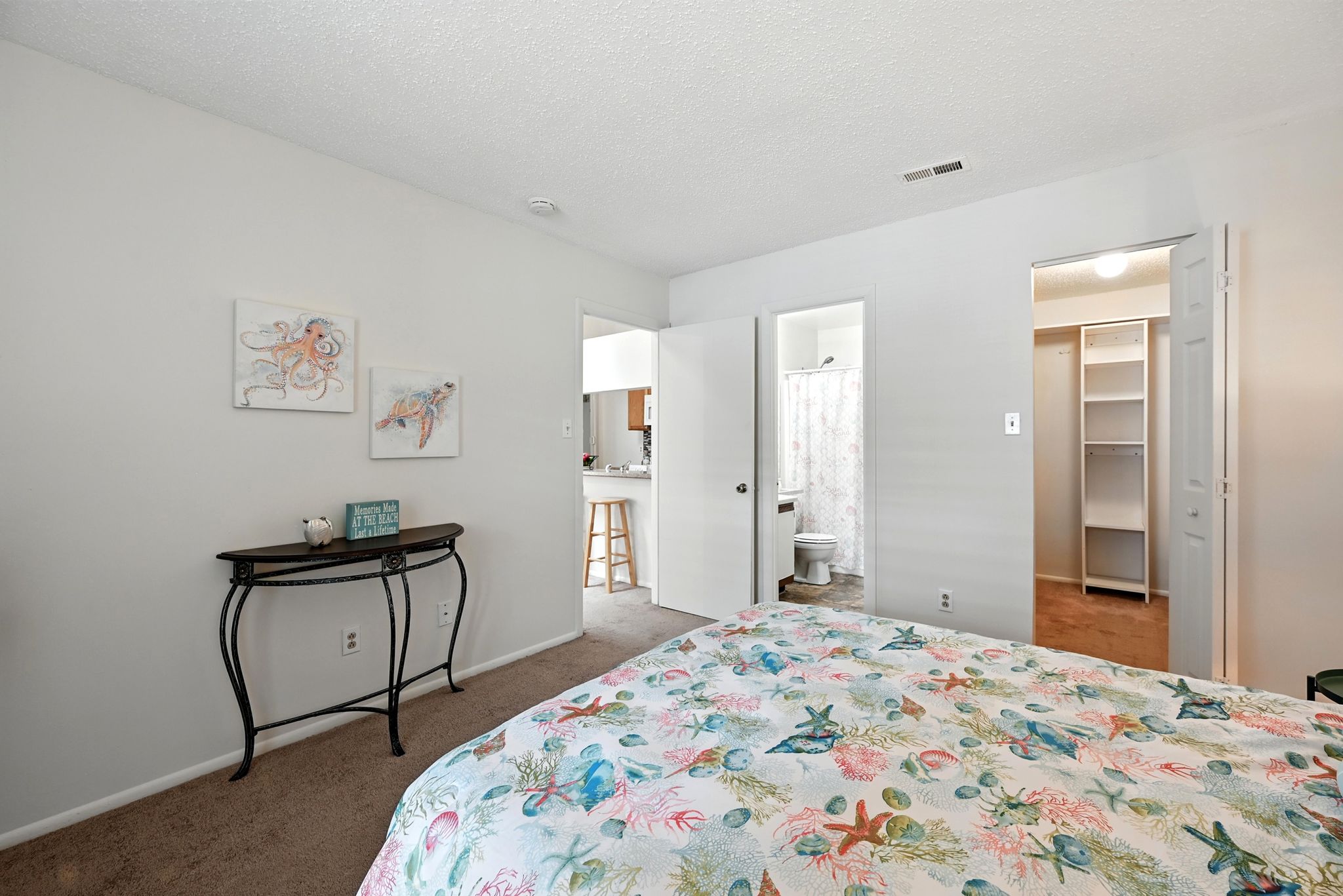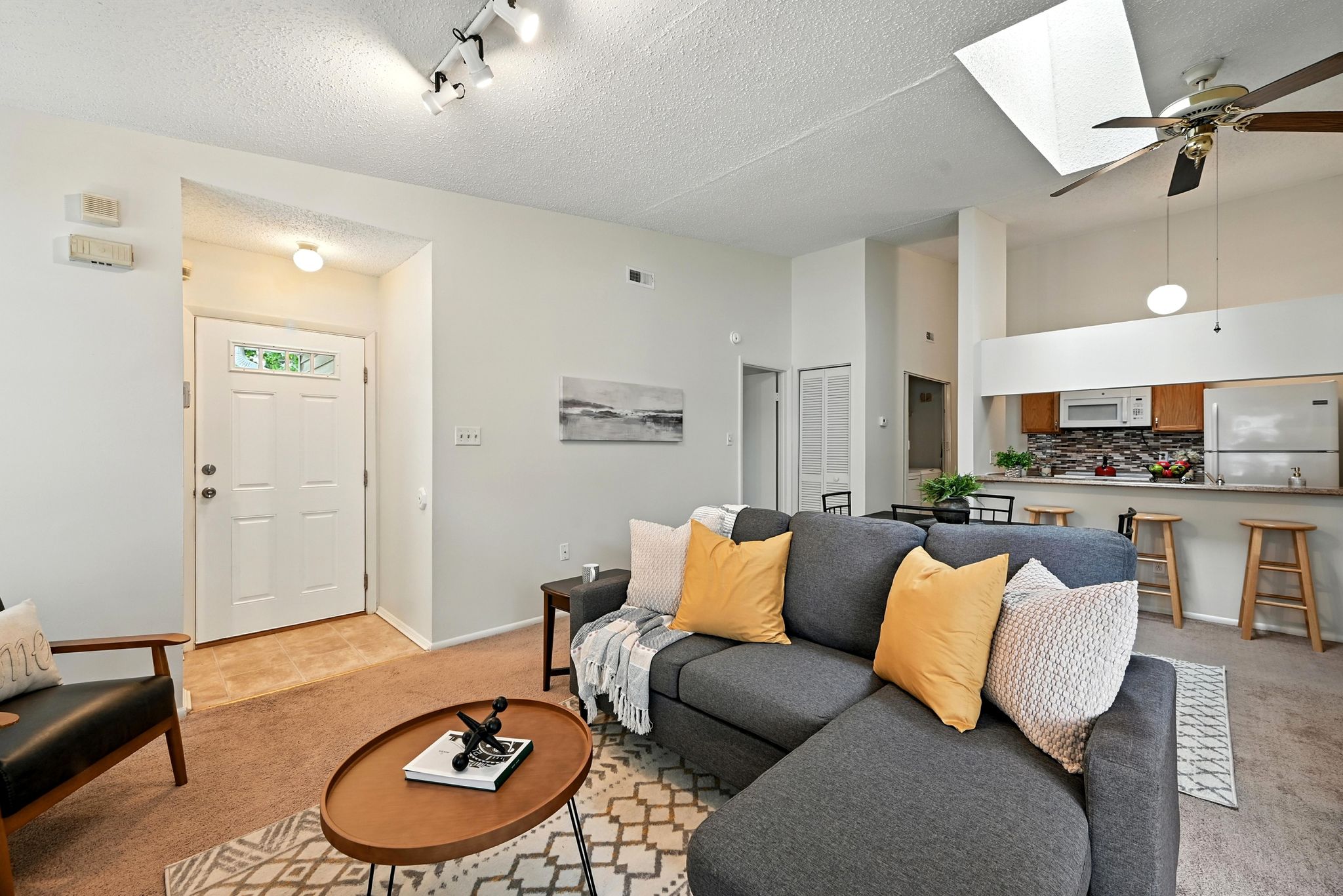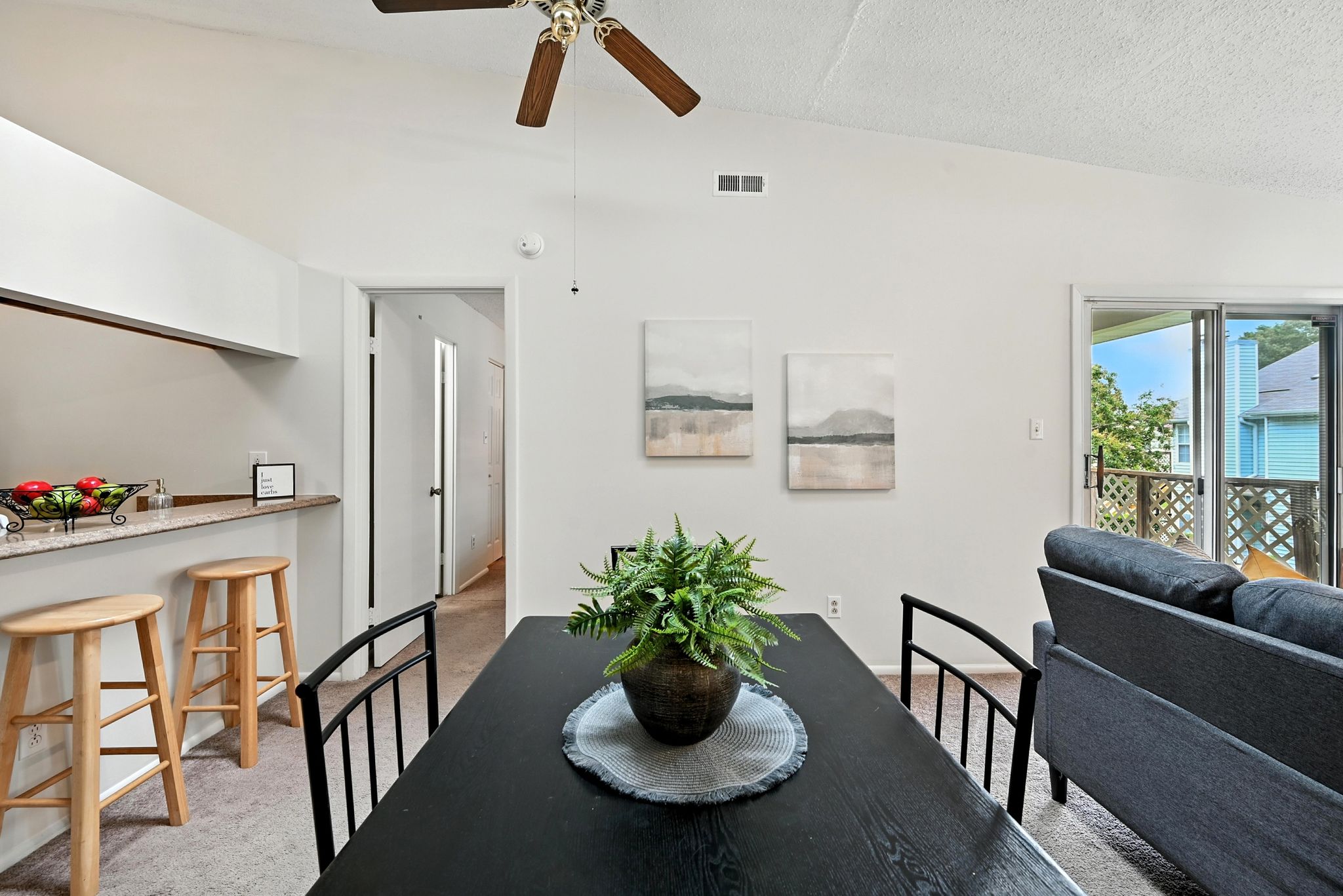 Welcome to this move-in ready end-unit condo in a secure gated community in the heart of Virginia Beach! This upstairs unit offers two spacious primary suites, each with its own full bath and walk-in closet, separated by a bright central living area with vaulted ceilings a skylight and a cozy wood-burning fireplace—perfect for relaxing evenings or chilly mornings. Step onto the private balcony overlooking a peaceful green space perfect for your morning coffee or evening unwind. Located within walking distance to shopping, dining, and local cafes, and just minutes from Town Center and the Oceanfront. Enjoy easy access to interstates and military bases. Community amenities include a clubhouse, pool, water, sewer, trash, and grounds maintenance. Live comfortably with privacy, convenience, and lifestyle all in one place!